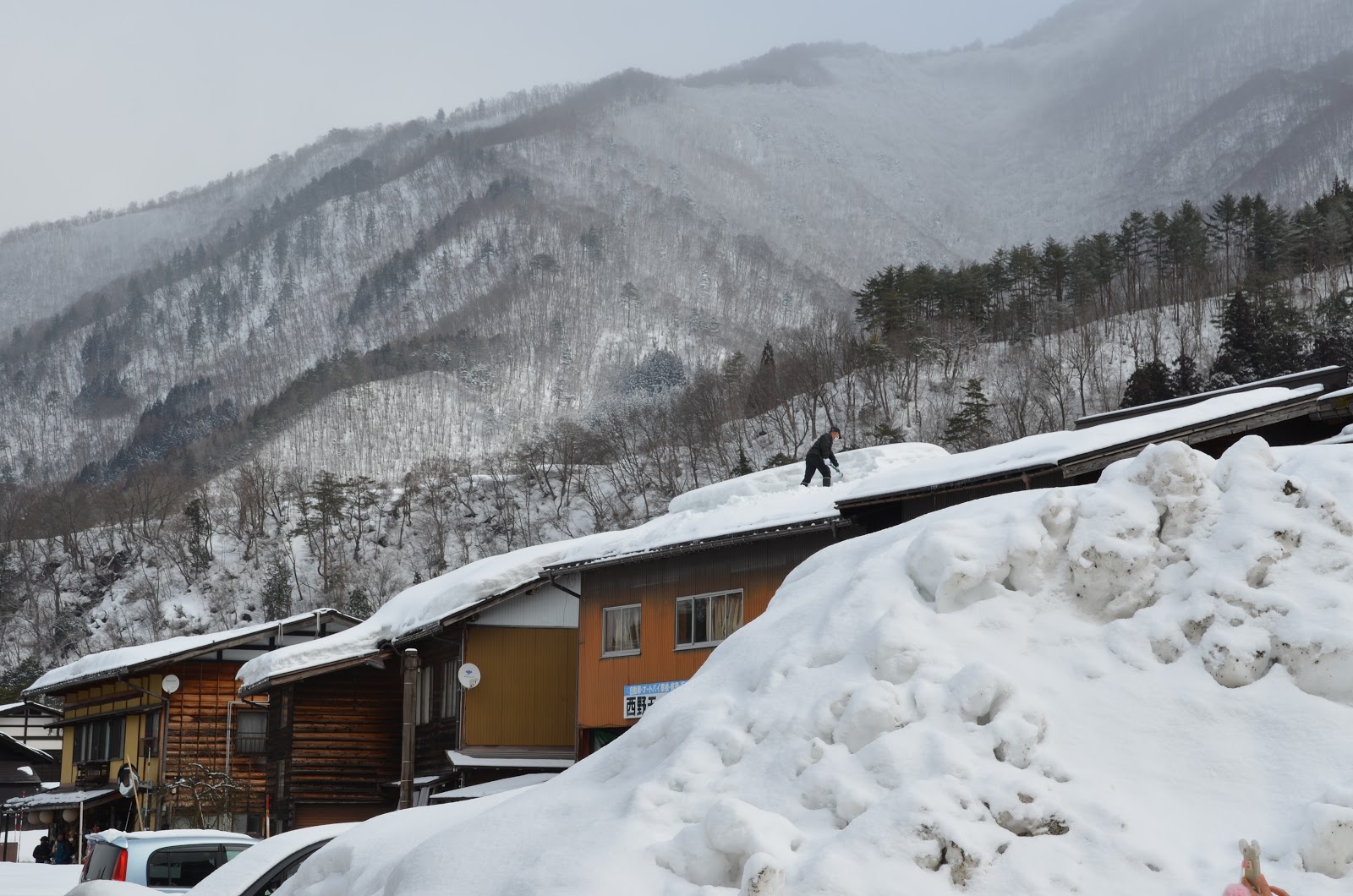 We checked out with heavy hearts and said goodbye to our lovely hosts who had been so accommodating and considerate and we gladly accepted their gift of chopsticks before setting off to find the train station. We got on an early bus to Shirakawa-go and fifty minutes later were stepping on to the snow dusted streets that are home to the famous thatched farmhouses in the gassho-zukuri style. The houses are primarily preserved for tourism but they are also home to around 600 people, some of whom we encountered as we made our way around the working village. Not to harp on but I found the history of these farmhouses particularly interesting – the angled roofs prevent snow accumulation and the name, gassho, means “prayer” in Japanese as they look like hands clasped together in prayer. The attic areas are ideal for silk cultivation and some of the larger houses would have been home to wealthier families with up to 30 people living under one roof. In the olden days (yes, I really did just use that phrase) these houses would have been miles and several days of travelling apart. The art of making gassho style houses is dying out but what remains can be seen in Shirakawa-go.